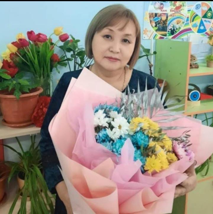 Лауазымы: Тәрбиеші Білімі: жоғары Еңбек өтілі: 18 жыл Біліктілік санаты: Педагог-сарапшы Марапаттаулар: «9 Мамыр-Ұлы Жеңіс күні» -2020ж; Толығырақ