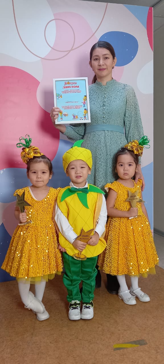 Қатысқан және жеңіске жеткен Құлыншақ тобы тәрбиешісі Байзакова Асылай Мукашовна,